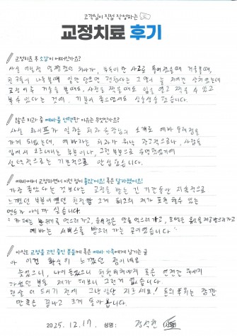 교정치료가 끝난 소감을